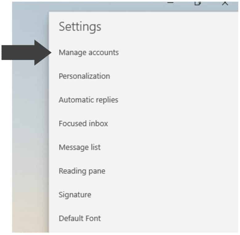 3. Click Manage Accounts from the Settings menu that appears on the right side of the screen