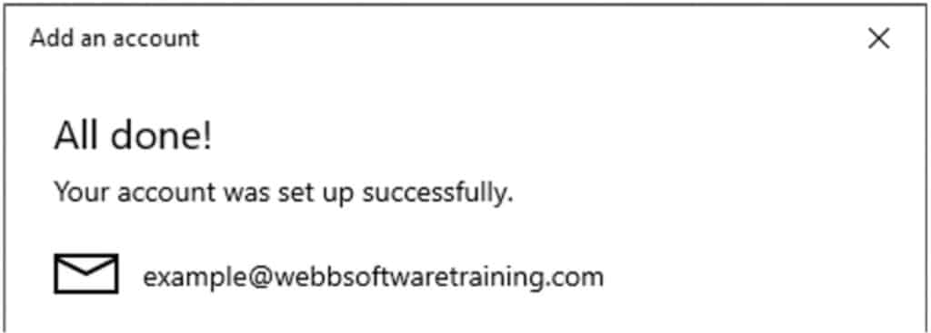 8. If you have entered your Account Details correctly you’ll see a message reading “All Done!”. Click the Done Button to complete the Setup Process